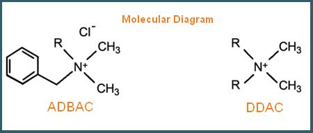- Alkyldimethyl benzyl ammonium chlorides (or ADBAC in the image above) are widely used as ‘surfactants’ (or compounds that lower the surface tension between two liquids or between a liquid and a solid). ADBAC are used extensively to kill bacteria, fungi, and algae as part of deodorant, and disinfectant products.