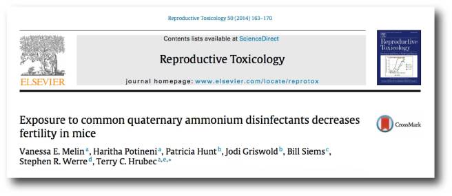 Title: Exposure to common quaternary ammonium disinfectants decreases fertility in mice.