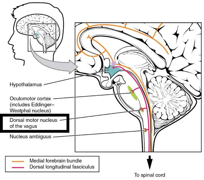 Based on the examination of 25 patients with Parkinson’s, Lewy had observed disease-specific features in a region of the brain called the dorsal nucleus of the vagus nerve (he didn’t look at the substantia nigra). The dorsal nucleus of the vagus nerve is a collection of cells that resides in the brain stem (at the base of the brain) and it receives signals from the heart, lungs and stomach.