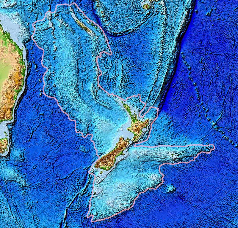 New global superpower: Zealandia (Pink outline). Source: Wikipedia