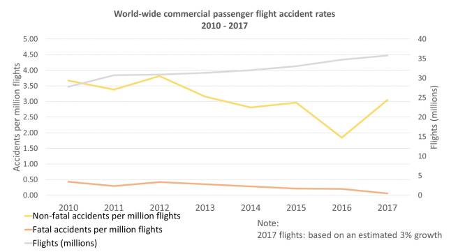 Note the downward trend on the orange line (deaths) despite the upward trend on number of flights (grey). Source