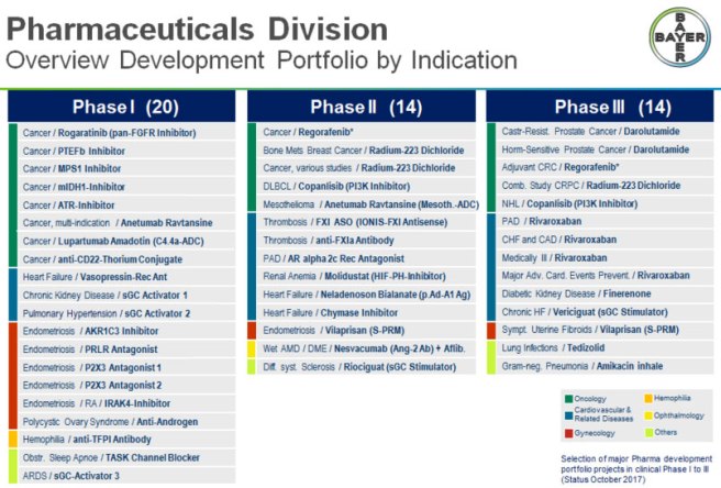 Bayer’s clinical trial pipeline in October 2017. Source: Bayer