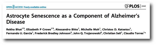 In this study, the researchers looked at levels of two proteins associated with senescence (metalloproteinase-1 (or MMP-1) and p16INK4a) in astrocytes in fetal, middle aged (35 to 50 years) and elderly (78 to 90 years) brain tissue samples. Compared with the fetal tissue samples, the investigators observed a significant increase in the number of astrocytes with high levels of these two proteins. And this number increased when the researchers looked at elderly brains. In addition, samples from people who passed away with Alzheimer’s harboured a significantly greater level of p16INK4a-in astrocytes compared with samples from normal-healthy adult control subjects of similar ages.