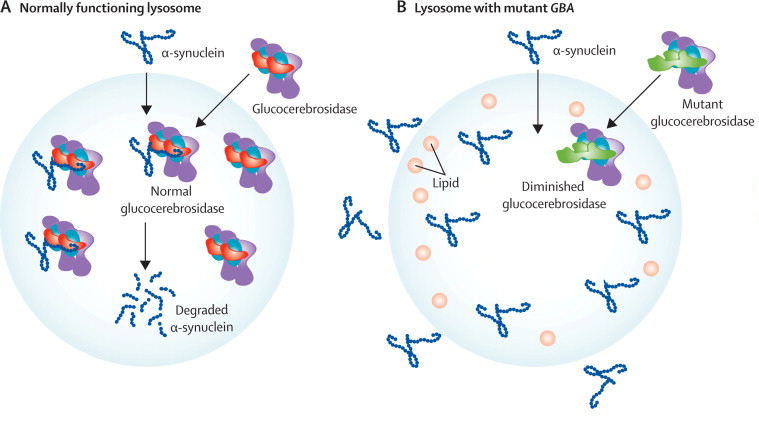 Lysosome function in normal and mutant GBA situations. Source: The Lancet