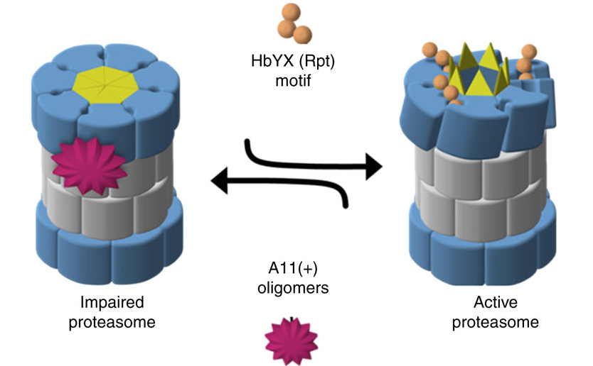 4. Three conditions, one common theme: Three different neurodegenerative conditions (Alzheimer’s, Parkinson’s, and Huntington’s) which are characterised by protein clustering – or aggregation – apparently share a common feature. The aggregated form of their protein (in a configuration that is called oligomers) each form a shape which reacts with the proteasome inside of cells. The proteasome are structures inside cells that function as garbage disposal units, breaking down waste and old proteins, allowing their components to be reused or disposed of. This shared structure between the three conditions, has been found to impair normal proteosome function, with low nanomolar affinity. This could explain certain aspects of all of these neurodegenerative conditions (Click here to read more about this research).