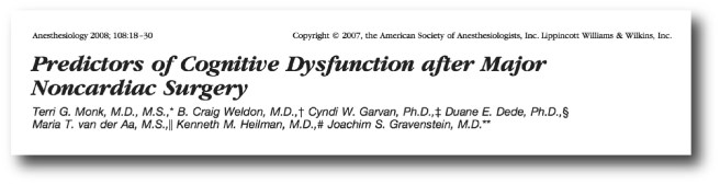 Title: Predictors of cognitive dysfunction after major noncardiac surgery