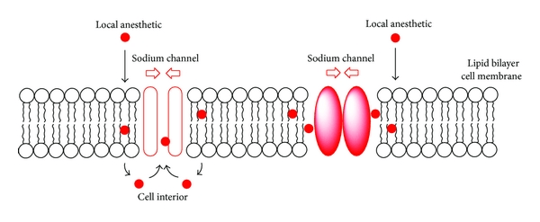 Local anaesthetics (such as Novocaine or Lidocaine) achieve this by blocking the sodium channels in neurons. This limits the nerves ability to send an action potential – an electrical impulse that is conducted along the branches of neurons.