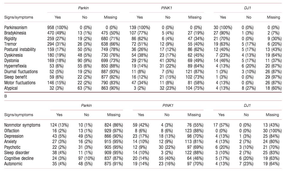 - Very interesting review of the “genotype‐phenotype” relationships for the Parkinson’s. University of Luebeck researchers outline what is known about the PD features associated with genetic variants in three PD-associated genes: PARKIN, PINK1, & DJ1 (Click here to read more about this research).