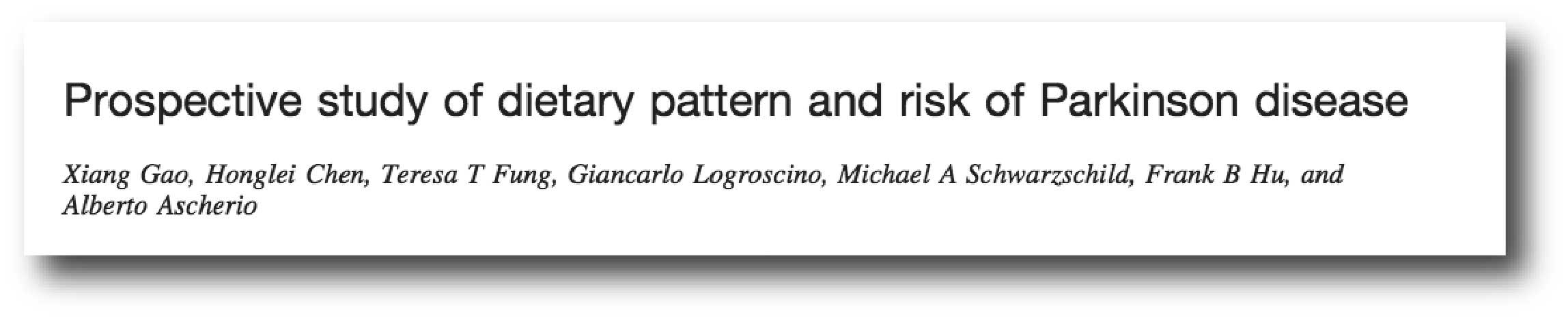 Title: Prospective study of dietary pattern and risk of Parkinson disease.
