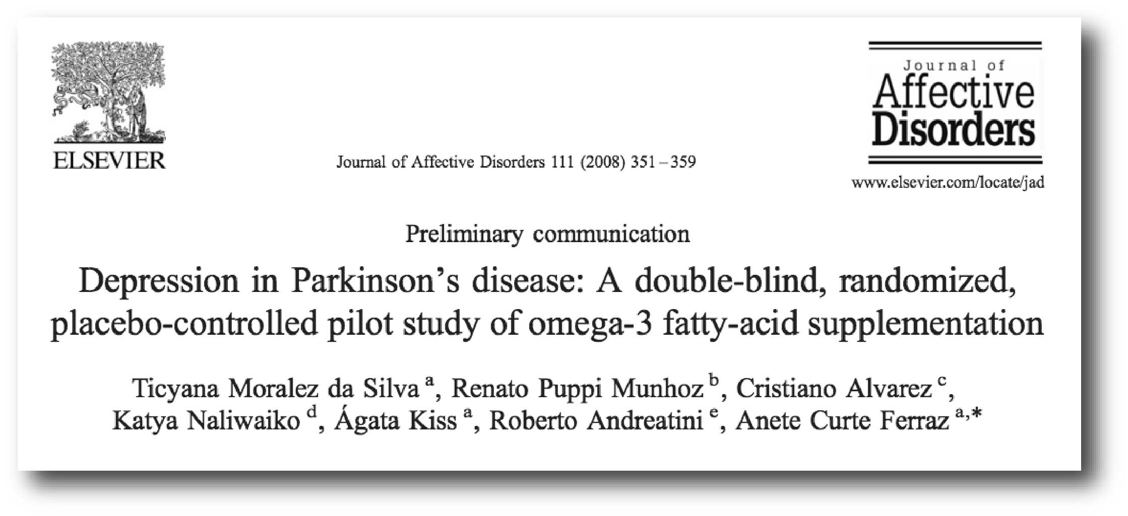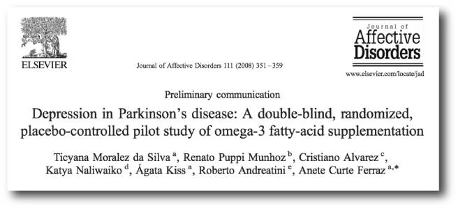 Title: Depression in Parkinson’s disease: a double-blind, randomized, placebo-controlled pilot study of omega-3 fatty-acid supplementation.