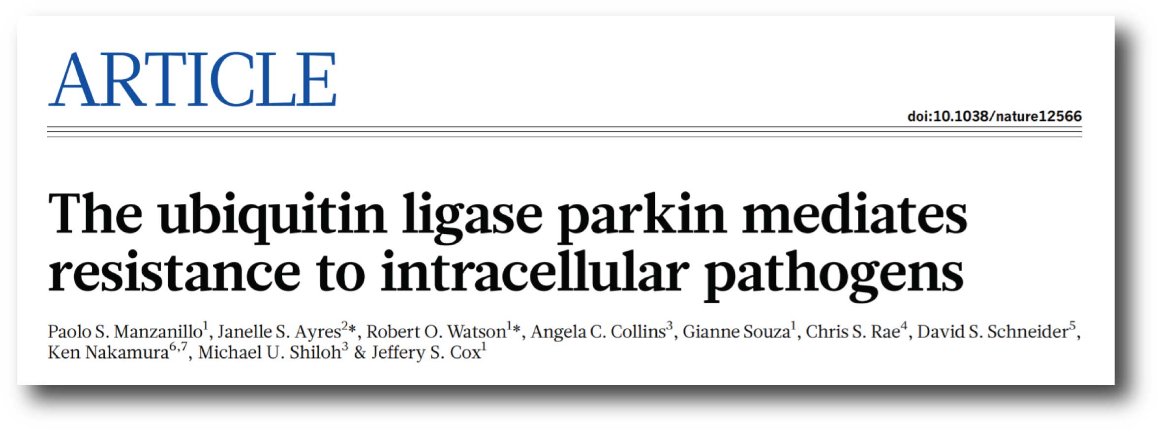 Title: The ubiquitin ligase parkin mediates resistance to intracellular pathogens.
