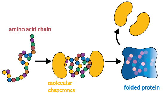 Molecular chaperones are proteins that assist in the folding (or unfolding) and the assembly (or disassembly) of other proteins. They are like the make-up artists and wardrobe departments back stage at the theatre, making sure the actors are correctly dressed and ready for the big stage.