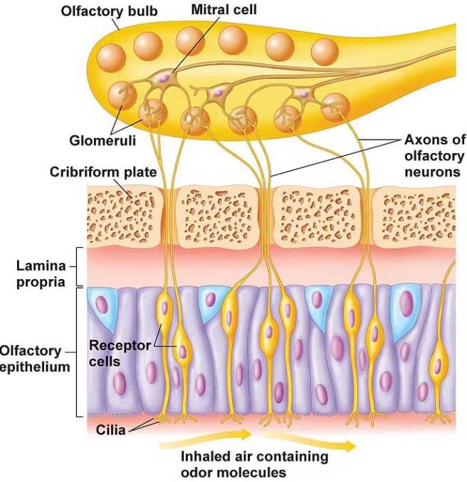Glomeruli is a spherical structure located in the olfactory bulb where connections are made between the branches of the nerves in your nasal passage and your brain.