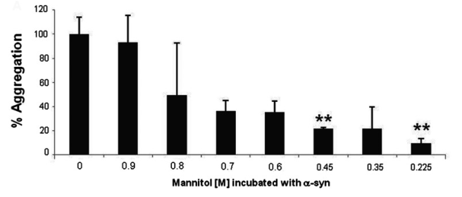 Lower dose of mannitol, less alpha synuclein aggregation. Source: PMC