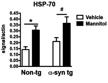 The researchers repeated this fly-based study in genetically engineered mice (which produce high levels of alpha synuclein). The investigators found that mannitol-treatment was very effective in reducing the levels of alpha synuclein aggregation in these mice as well. In addition, the investigators found that mannitol administration in mice was followed by a significant increase in the level of the HSP-70 protein.