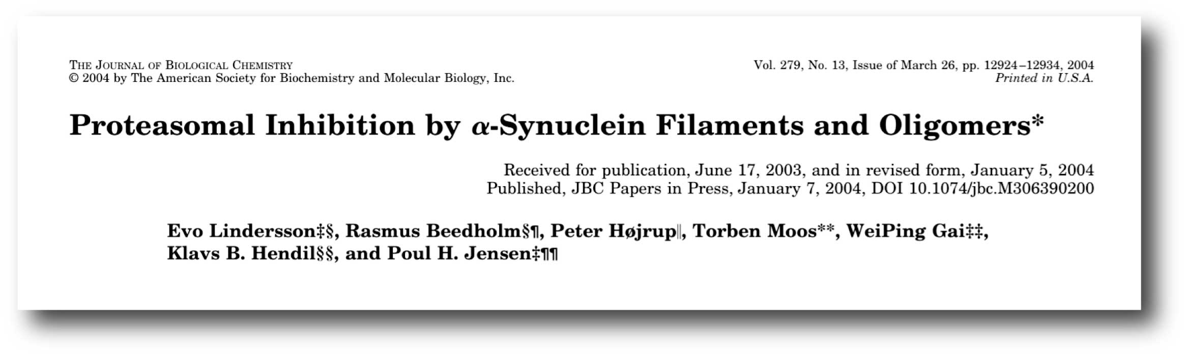 Authors: Lindersson E, Beedholm R, Højrup P, Moos T, Gai W, Hendil KB, Jensen PH.