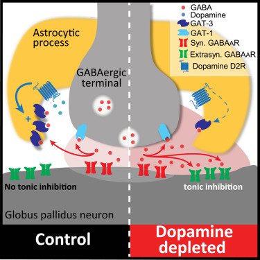 - Researchers find that the activity of glial GAT-3 transporters in an area of the brain called the globus pallidus may contribute to abnormal motor coordination in Parkinson’s. Blocking GAT-3 activity in normal rats disrupts motor coordination (Click here to read more about this research).