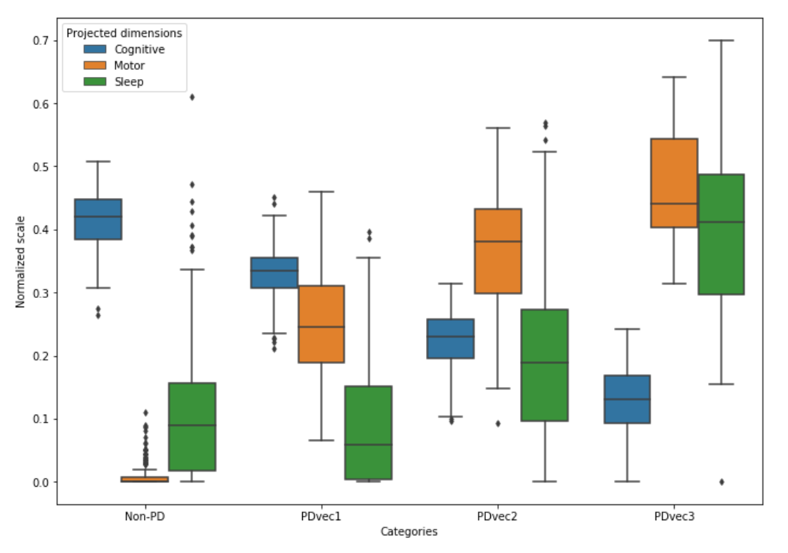 The researchers pooled all of the data together – which included multiple visits to clinical assessments over the 4 year period in the PPMI data (and 3 year period in the PDBP data) – and they looked for signs of clustering within the data.