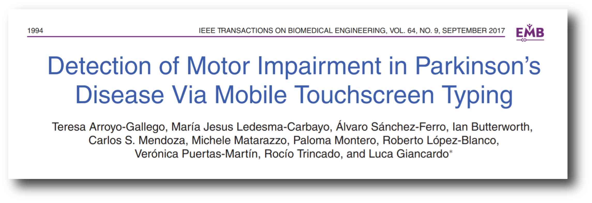 Authors: Arroyo-Gallego T, Ledesma-Carbayo MJ, Sanchez-Ferro A, Butterworth I, Mendoza CS, Matarazzo M, Montero P, Lopez-Blanco R, Puertas-Martin V, Trincado R, Giancardo L.