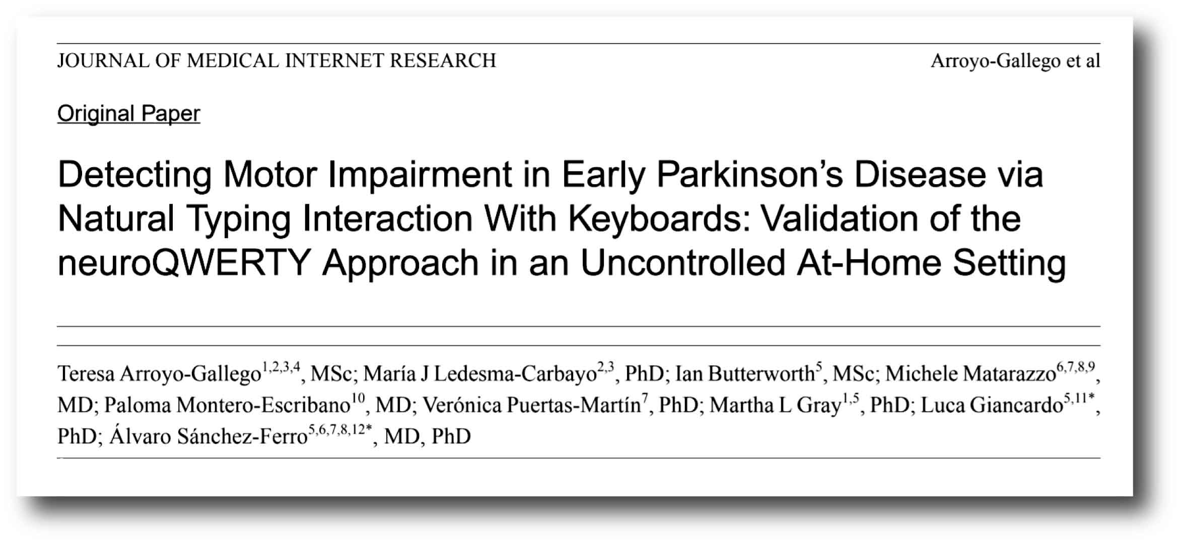 Title: Detecting Motor Impairment in Early Parkinson’s Disease via Natural Typing Interaction With Keyboards: Validation of the neuroQWERTY Approach in an Uncontrolled At-Home Setting.