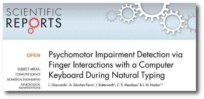 Title: Psychomotor impairment detection via finger interactions with a computer keyboard during natural typing.