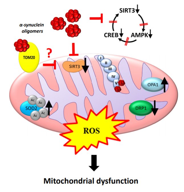 - a manuscript on BioRxiv suggests that pharmacologically increasing SIRT3 levels counteracts Parkinson’s-associated alpha synuclein-induced mitochondrial dysfunction by normalising mitochondrial activity (Click here to read the manuscript).