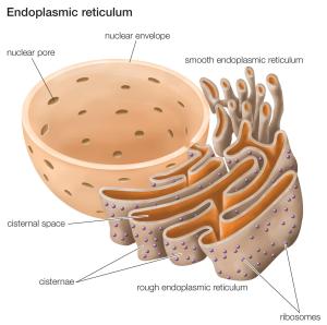 The endoplasmic reticulum (or ER) is the assembly line where proteins are produced in a cell. It is closely attached to the nucleus of the cell.