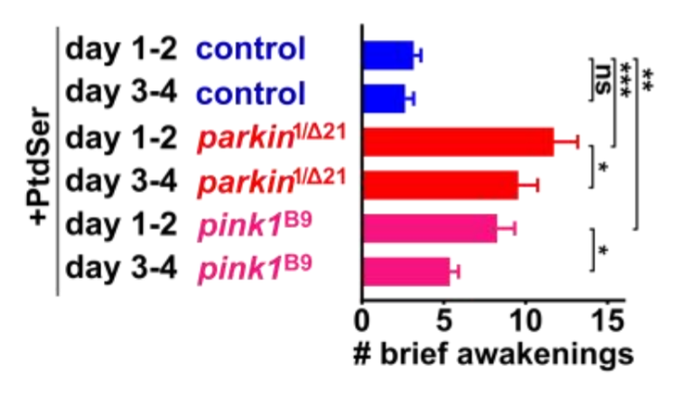 The depletion of Phosphatidylserine is certain populations of cells in the brain of normal flies would result in a very similar pattern of sleep to that observed in the PARKIN and PINK1 mutant flies.
