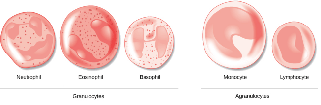 - agranulocytes – which do not have tiny granules inside them (simple enough)
