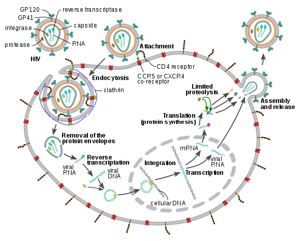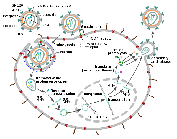 The cycle of replication of HIV. Source: Wikipedia