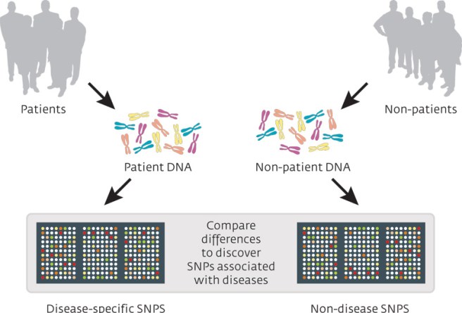 A genome-wide association study (or GWAS) is an analysis of a set of genetic variants across the entire genome (or all of the DNA in your cells, including mitochondrial), and this analysis is conducted in a large pool of different individuals to see if any variants are associated with a particular trait (or medical condition). It is typically an analysis of single nucleotide polymorphisms (or SNPs; a variation in a single nucleotide). The researcher will check your DNA for the presence of a large set of single nucleotide variations, and then compare them with the results collected from other people.