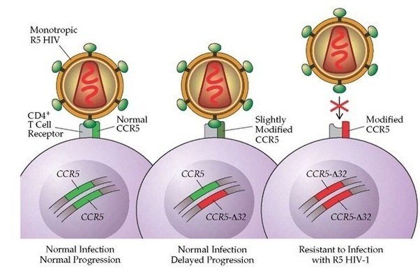 Other variants can infer traits that may be considered beneficial, for example, some people have a genetic mutation in the CCR5 gene. HIV uses that protein to enter into human cells. Thus, if a person has a mutation in CCR5, they are extremely unlikely to become infected by the virus.