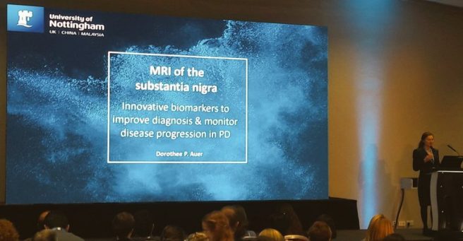Of particular interest in this session was a presentation by Prof Dorothee Auer from the University of Nottingham, who provided a impressive overvew of how magnetic resonance (MR) brain imaging is being used to investigate the substantia nigra area of the midbrain – a region near the top of the brainstem.