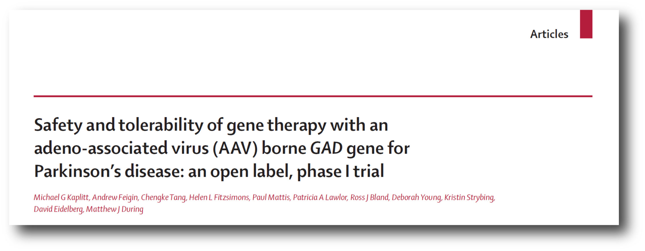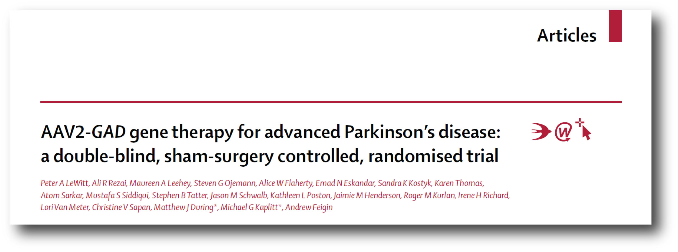 Title: AAV2-GAD gene therapy for advanced Parkinson’s disease: a double-blind, sham-surgery controlled, randomised trial.