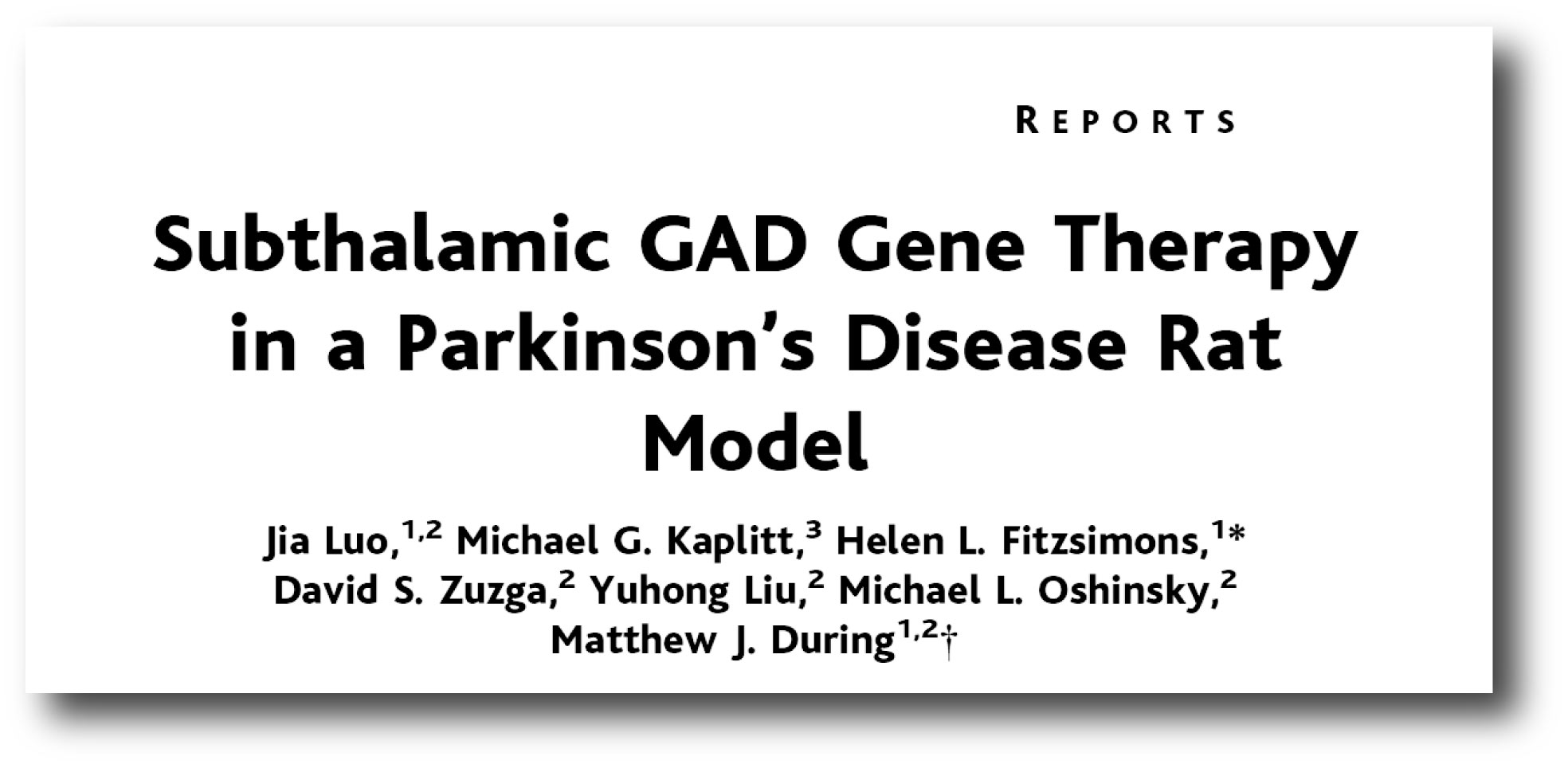 Authors: Kaplitt MG, Feigin A, Tang C, Fitzsimons HL, Mattis P, Lawlor PA, Bland RJ, Young D, Strybing K, Eidelberg D, During MJ.