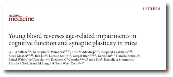 The conclusions of this study was that “Factors in young blood have the potential to ameliorate disease in a model of Alzheimer’s”. And this has led to the establishing of clinical trials for people with Alzheimer’s – more on this below.
