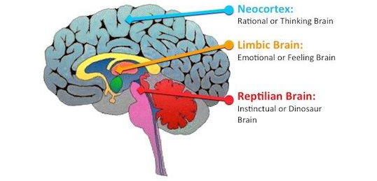 In between the neocortex and the ‘reptilian brain’ is the limbic brain, which is a structure that developed between these two parts of the brain.