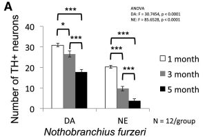 The researchers firstly looked at the dopamine system of N. furzeri fish from 1, 3 and 5 months of age.