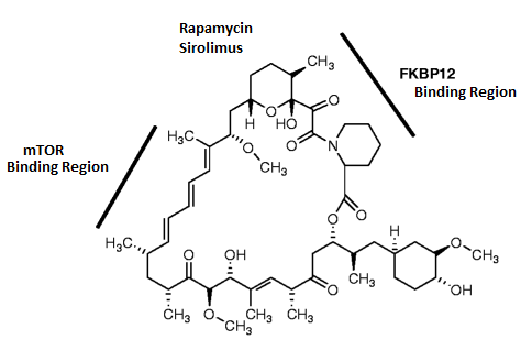 Rapamycin is an inhibitor of mTOR – it has a mTOR binding region (see image below), but it affects TORC1 and TORC2 differently.