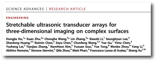 Title: Stretchable ultrasonic transducer arrays for three-dimensional imaging on complex surfaces.