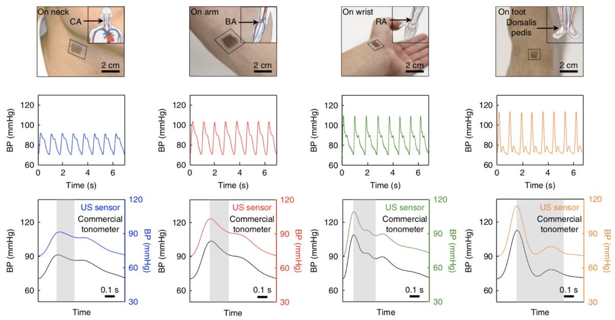 And in the follow up ‘Nature Biomedical Engineering’ report, the researchers have applied this stretchable ultrasound monitoring technology to the matter of monitoring blood pressure.