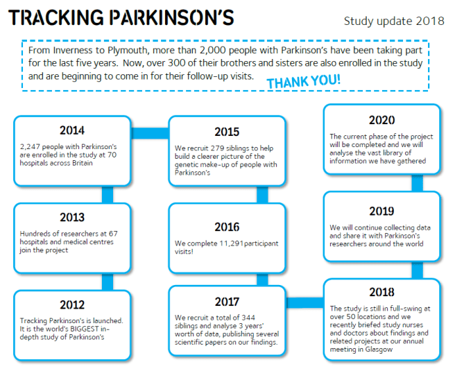 In 2012, Parkinson’s UK launched Tracking Parkinson’s – which was at the time the world’s largest ever in-depth study of people with Parkinson’s. It was an observational study which involved collecting clinical data and biosamples from over 2,500 people with Parkinson’s across the UK.