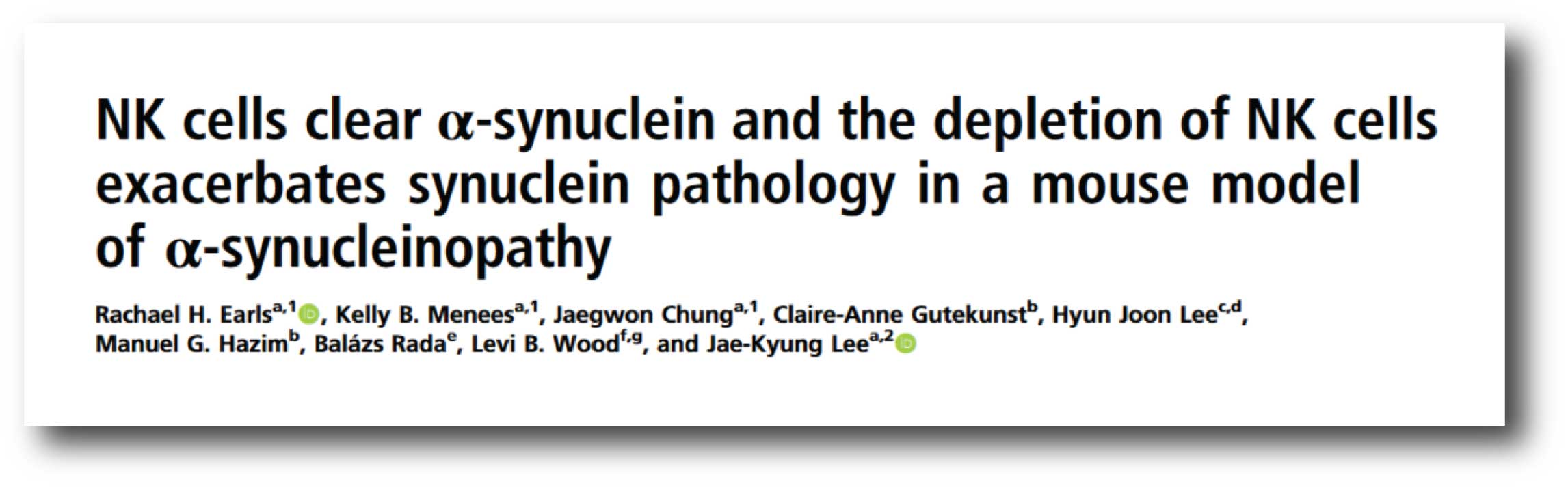 Title: NK cells clear α-synuclein and the depletion of NK cells exacerbates synuclein pathology in a mouse model of α-synucleinopathy.