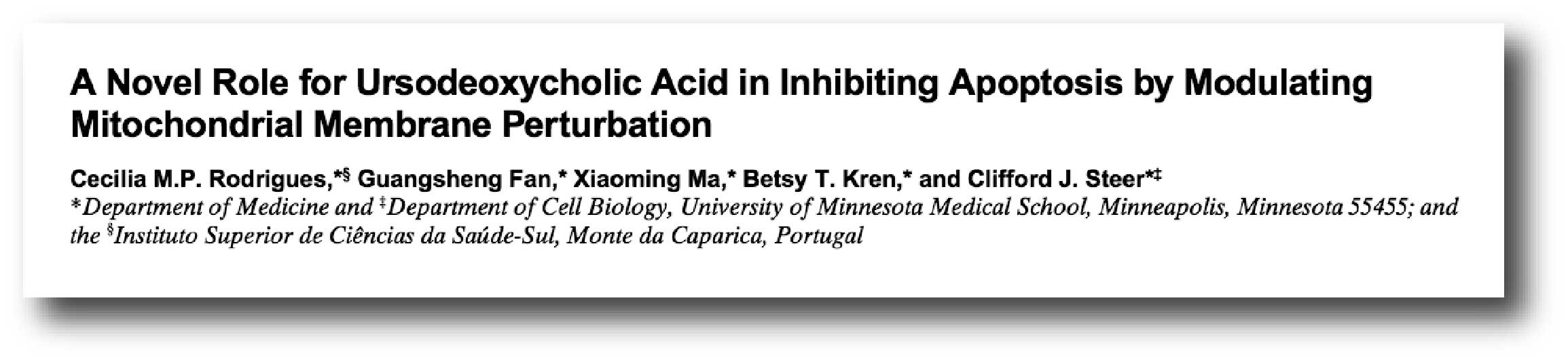 Title: A novel role for ursodeoxycholic acid in inhibiting apoptosis by modulating mitochondrial membrane perturbation