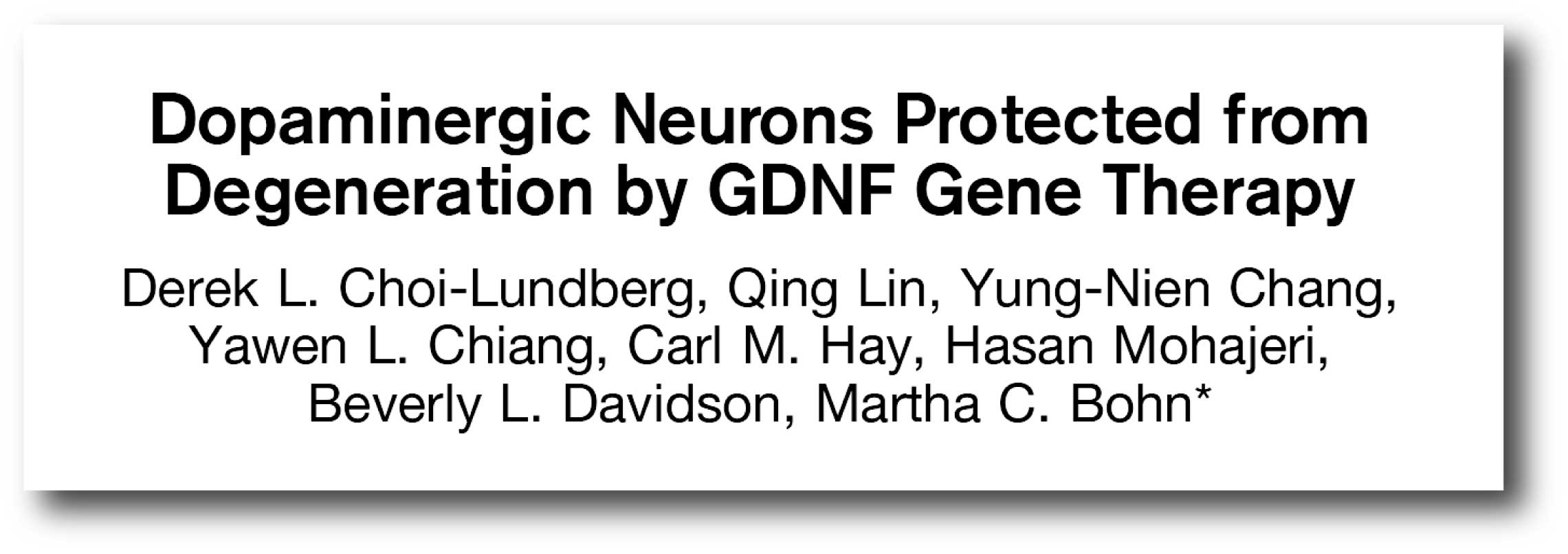 Title: Dopaminergic neurons protected from degeneration by GDNF gene therapy.