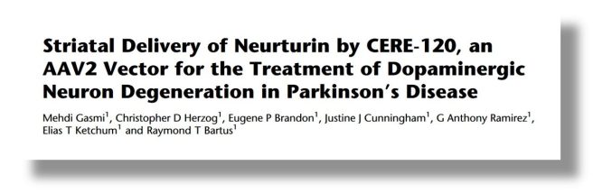 I am not sure. The researchers do not discuss this in the report. And Sangamo – the biotech company that now owns the neurturin gene therapy approach – makes no mention of it on their pipeline page (but interesting to note that they do have an α-Synuclein-focused treatment under development with Biogen, called ST-502).