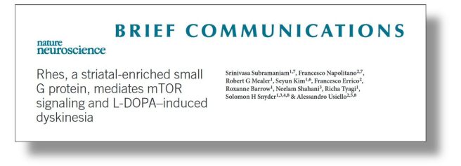 Title: Rhes, a striatal-enriched small G protein, mediates mTOR signaling and L-DOPA-induced dyskinesia.