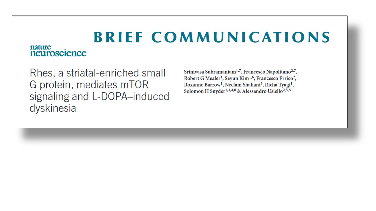 Authors: Subramaniam S, Napolitano F, Mealer RG, Kim S, Errico F, Barrow R, Shahani N, Tyagi R, Snyder SH, Usiello A.