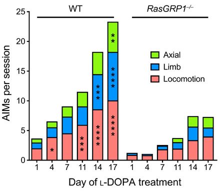 They also found that reducing RasGRP1 levels significantly reduced levodopa-induced dyskinesias in mice.