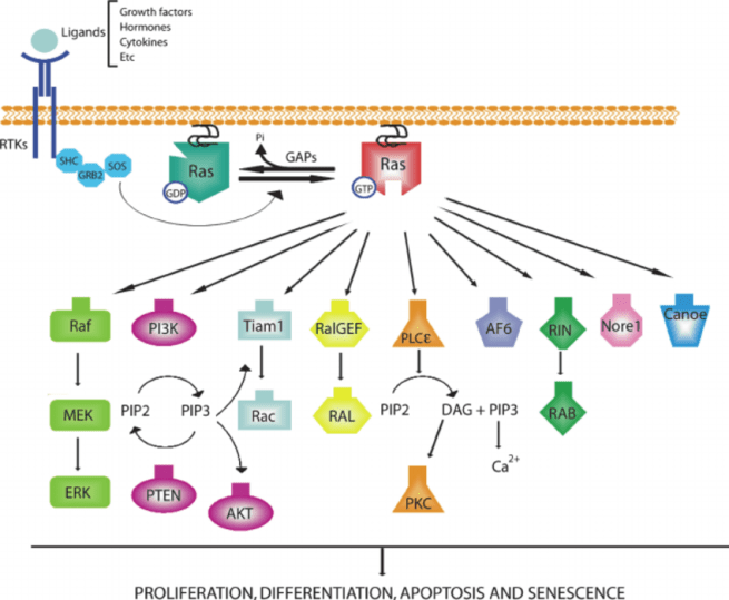In this study, the researchers highlighted a protein called RasGRP1 (yes, that RAS guanyl-releasing protein 1 – the same protein we were discussing above). They reported that RasGRP1 interacts with and stabilises Rhes, in effect promoting an abundance of the protein and enhancing its effect.